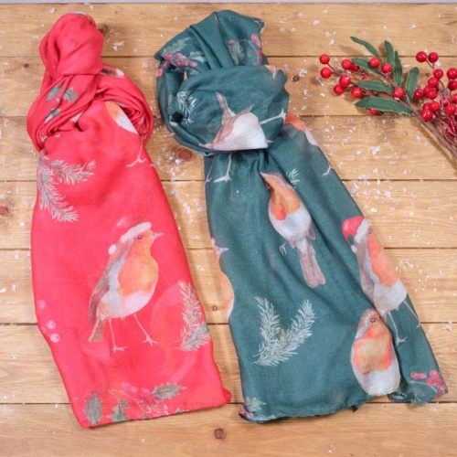 CHRISTMAS FESTIVE ROBIN REPEAT PATTERN SCARF 2 ASSTD (SOLD SEPARATELY)