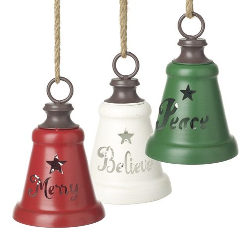 MIX OF 3 RED GREEN WHITE HANGING BELLS