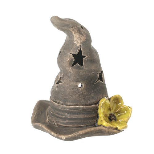 BLACK STONEWARE WITCHES HAT T LIGHT