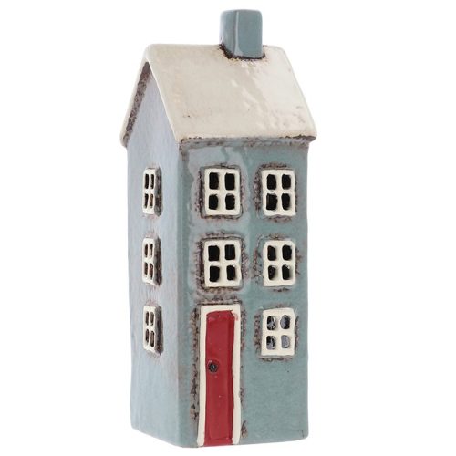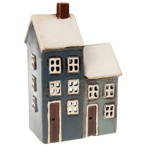 Village Pottery Grey/Aqua Two Houses Tealight