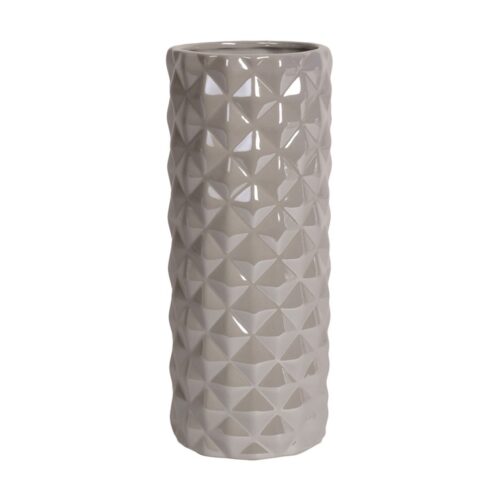 Large Grey Lustre Geometric Cylinder Vase 30cm
