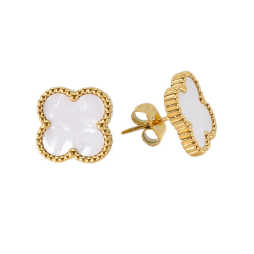 Enjoy designer quality at an affordable price with our 18K gold plated Four Leaf Clover Stud Earrings with black detailing. This trendy lucky four-leaf clover Stud Earrings with white detailing is the perfect gift or a treat for yourself. They come packaged in a beautiful presentation gift box, adding an extra touch of sophistication.